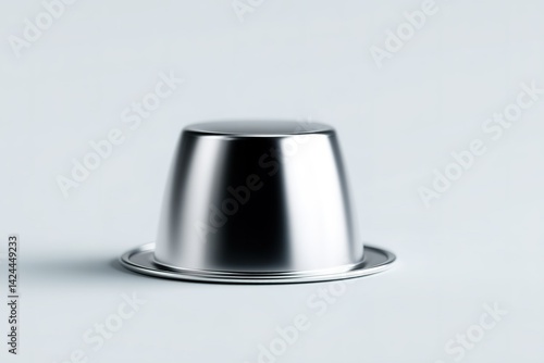 Shiny silver cup sitting on a smooth surface in a minimalist setting during daylight