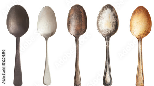 Shiny silver or stainless steel spoon cut out for kitchen utensil design and tableware concept isolated on white background