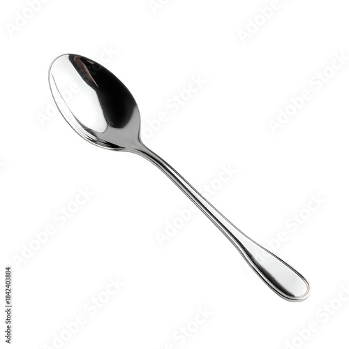 Shiny silver spoon isolated on transparent background, cutlery object in top view