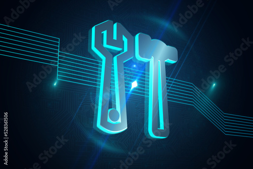 Shiny tools on black background