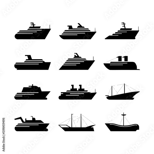 Ship Silhouette Vector Bundle Black and White Ship Clipart EPS Illustration