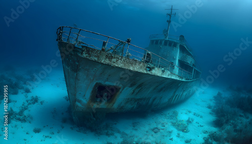 ship wreck underwater shipwreck on seabed sea floor standing metal on ocean floor