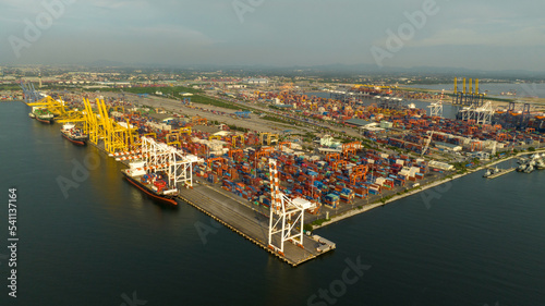 Shipyard Cargo Container Sea Port Freight forwarding service logistics and transportation. International Shipping Depot Custom Port for import export trade Transport Business manufacturing shipping