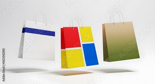 Shopping Bags Mockup of Colorful Paper Bags (AI Generated)
