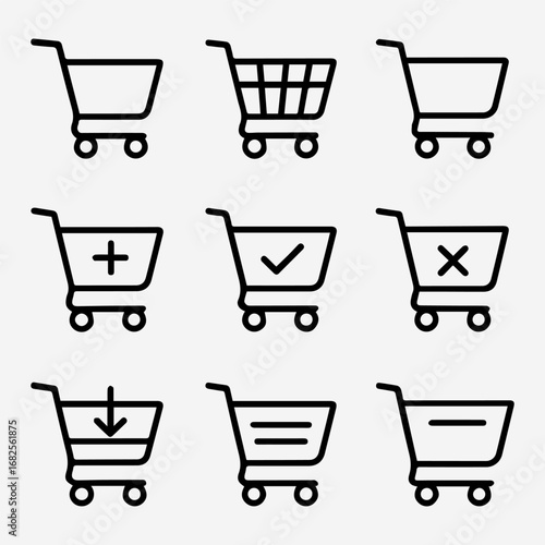 Shopping Cart Icon Set Add Check Remove Download and Order List.
