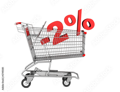 shopping cart with 2 percent discount isolated on white backgrou