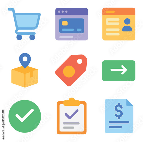 Shopping icon set. Flat style
