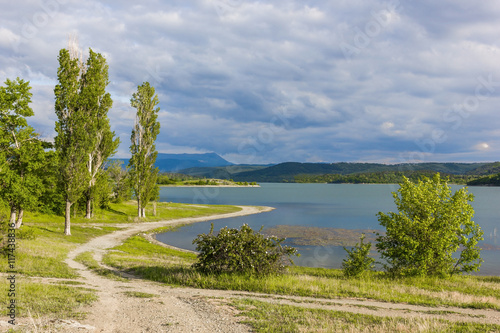 shore of the lake with trees