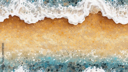 Shoreline pattern with white foam on beige sand, ideal for soft environmental backgrounds and coastal visual compositions.