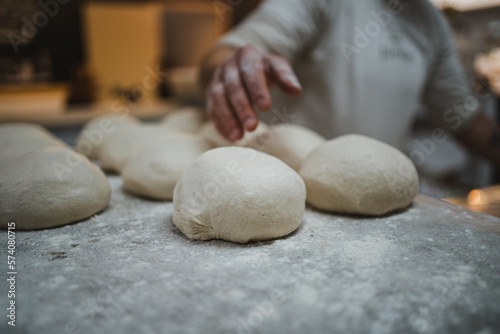 Shot of baker putting bread dough on board for resting