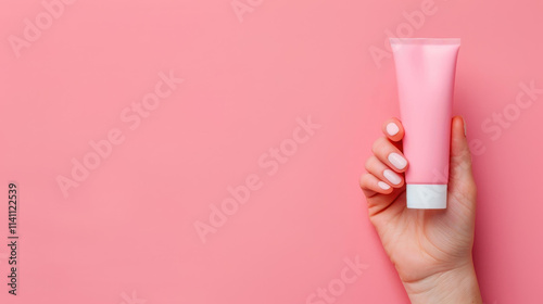 Showcase your skincare line with this mockup of a hand holding an ointment tube in a clean, modern setting.