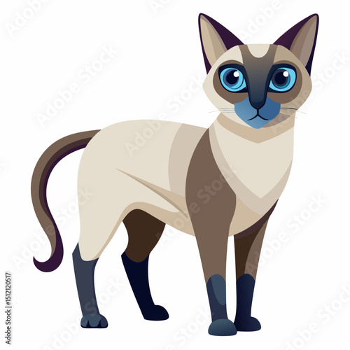 Siamese Cat Vector Illustration – Elegant Blue-Eyed Pet Drawing