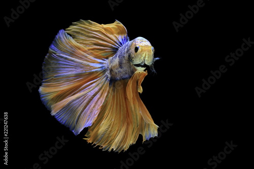 Siamese fighting fish, yellew fish, black background Betta splendens, Betta Fish, Halfmoon Betta.