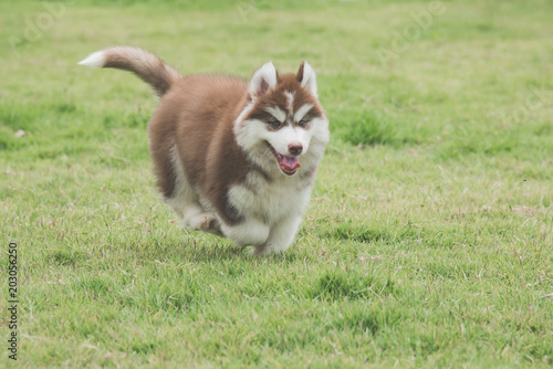 siberian husky puppy running on grass