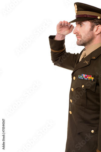 Side view of military officer salutation