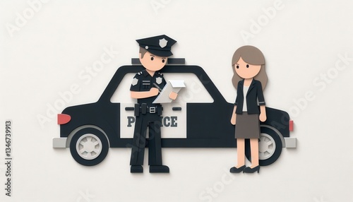 Side view of police interacting calmly with citizens in urban settings for community safety