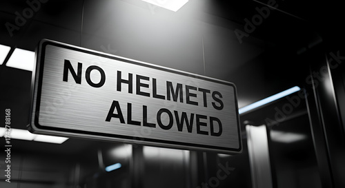 Signage Prohibiting Helmets Illustrates Rules and Regulations in a Specific Environment