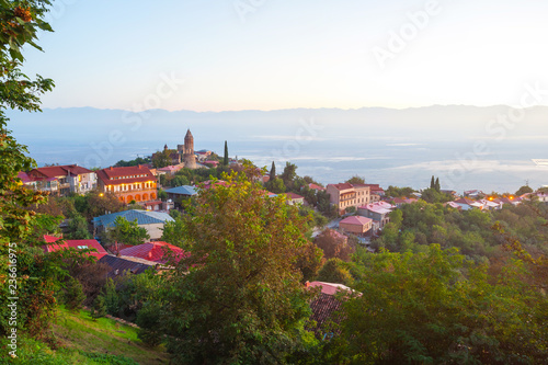 Signagi or Sighnaghi city in Kakheti region in Georgia, sunrise in Sighnaghi