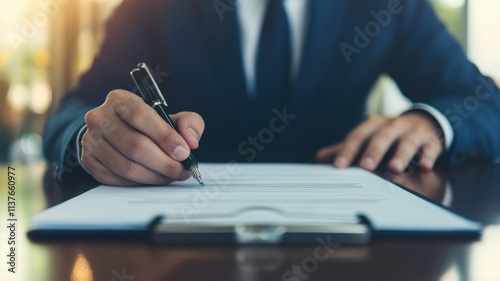 Signing important documents at a business meeting office corporate environment professional viewpoint focus on details