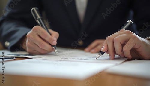 Signing Important Documents Two People Working Together on Legal Agreement