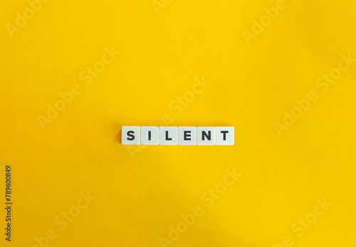 Silent Word. Text on Block letters on bright orange background. Minimal aesthetics.