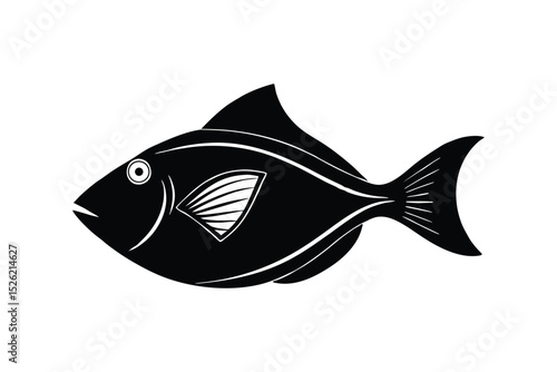Silhouette art illustration in side view of a triggerfish.eps