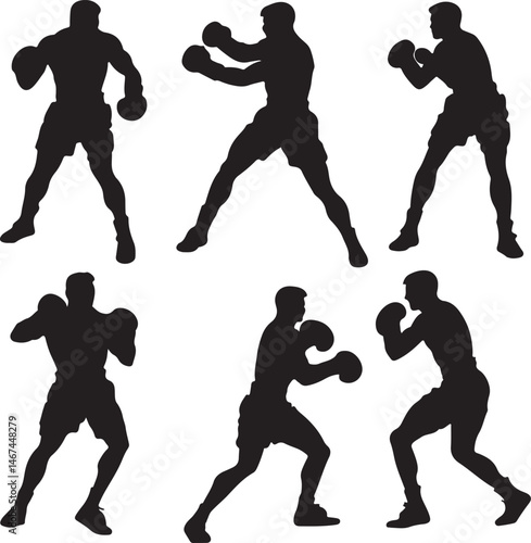 Silhouette Boxing Poses Set: Dynamic Fighter Silhouettes in Various Action Stances