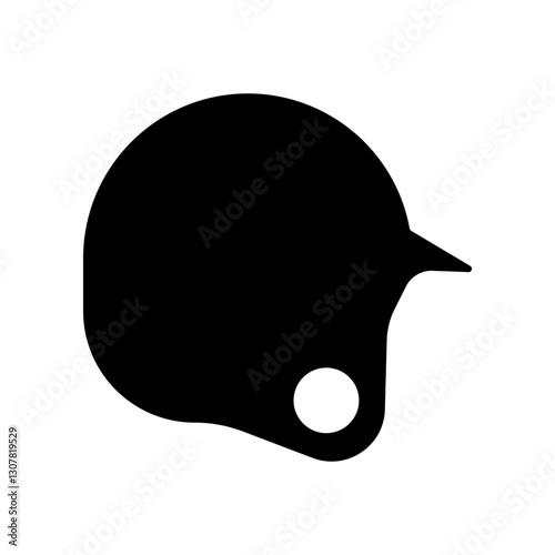 Silhouette Drawing of a Single Baseball Helmet Icon on White Background