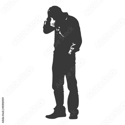 silhouette elderly man holding headache in pain black color only