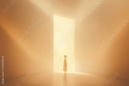 Silhouette Figure Representing Balance at the Threshold of Light and Dark in a Minimalistic Environment