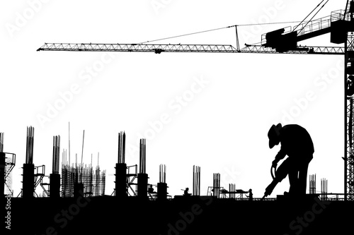 Silhouette images of construction sites are underway and workers are working