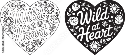 Silhouette Lettering Wild at Heart Flower Ornate Heart Isolated on Transparent