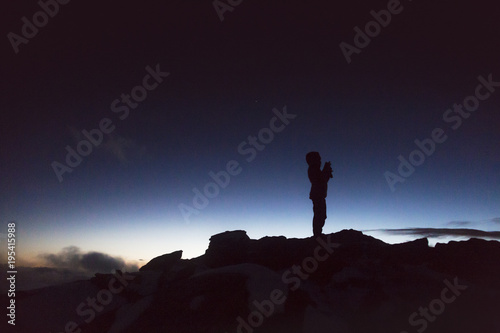 Silhouette of a climber in the French Alps at the sunset, France