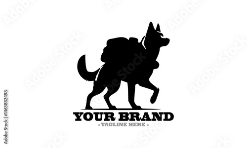 Silhouette of a dog walking with a backpack and Stylized dog illustration a vector icon and dog logo design vector illustration