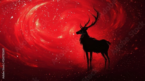 Silhouette of a majestic stag stands against a red nebula