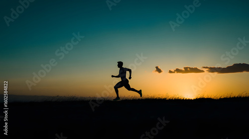 Silhouette of a man running against a colorful sunset. Healthy lifestyle concept