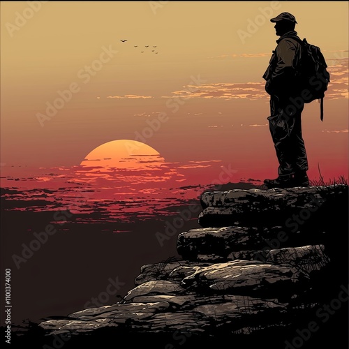Silhouette of a man standing on a cliff at sunset