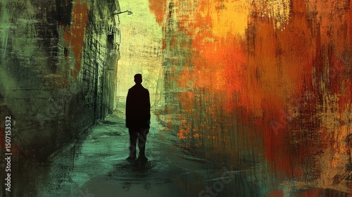 Silhouette of a person in a textured alleyway.