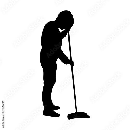 silhouette of a person sweeping or mopping
