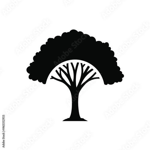 Silhouette of a stylized tree with a rounded crown vector illustration on white background
