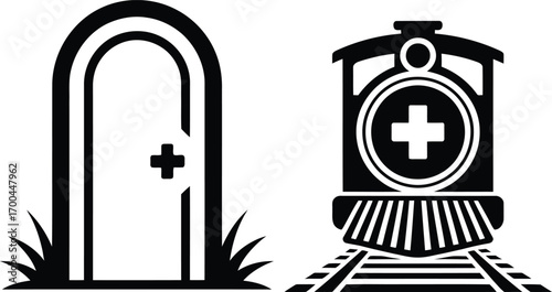 silhouette of a train and a door