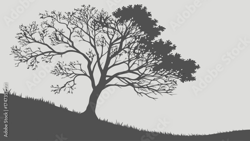 Silhouette of a tree on a hill nature illustration graphic design element.