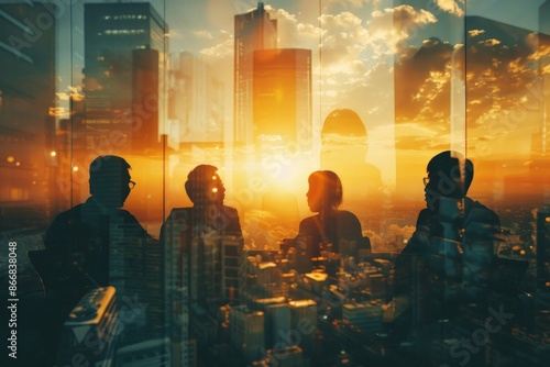 Silhouette of business individuals collaborating in an office. Embodying the concept of teamwork and partnership