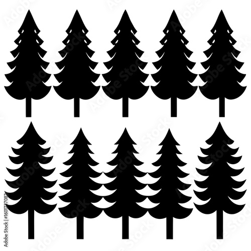Silhouette of Christmas Trees in a Forest Pattern on White Background