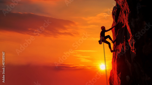 Silhouette of extreme rock climber against beautiful sunset