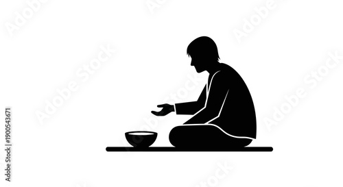 Silhouette of Person Sitting with Bowl on White Background