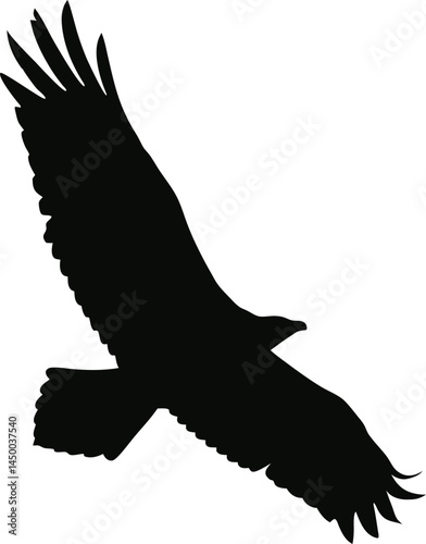Silhouette of Soaring Eagle in Flight | Majestic Black and White Illustration