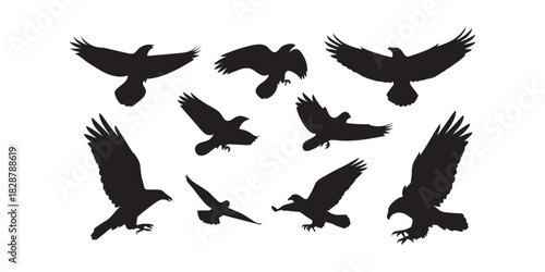 Silhouette of Soaring Eagles Collection Vector Graphic With Black Color and Simple Design On White Background