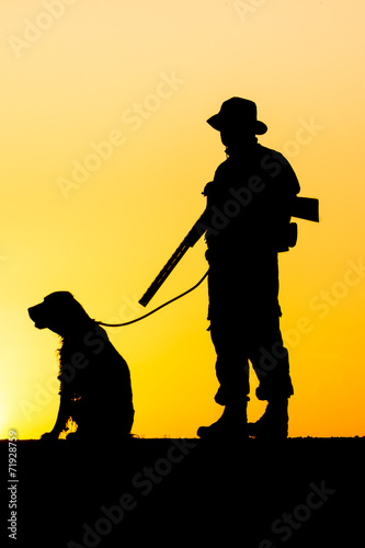 Silhouette of the hunter with a dog