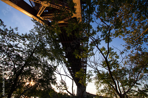 Silhouette of trees under the Hell Gate Bridge, New York